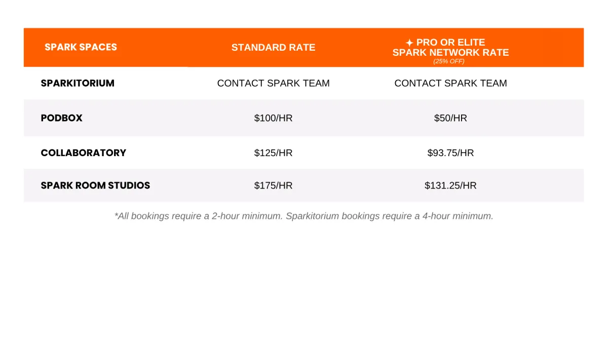 25% off Space bookings each month